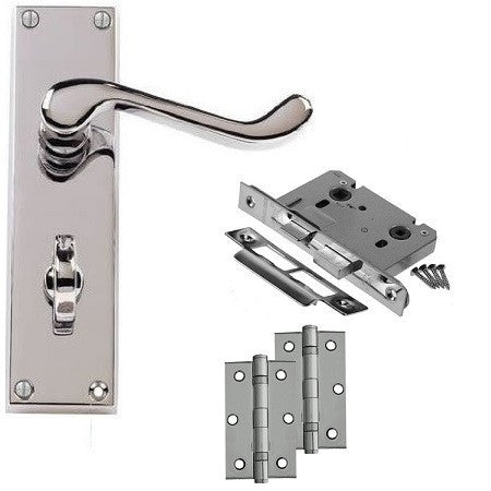 Scroll Door Handle on Backplate Pack - Bathroom Lock - Chrome/Satin Finish