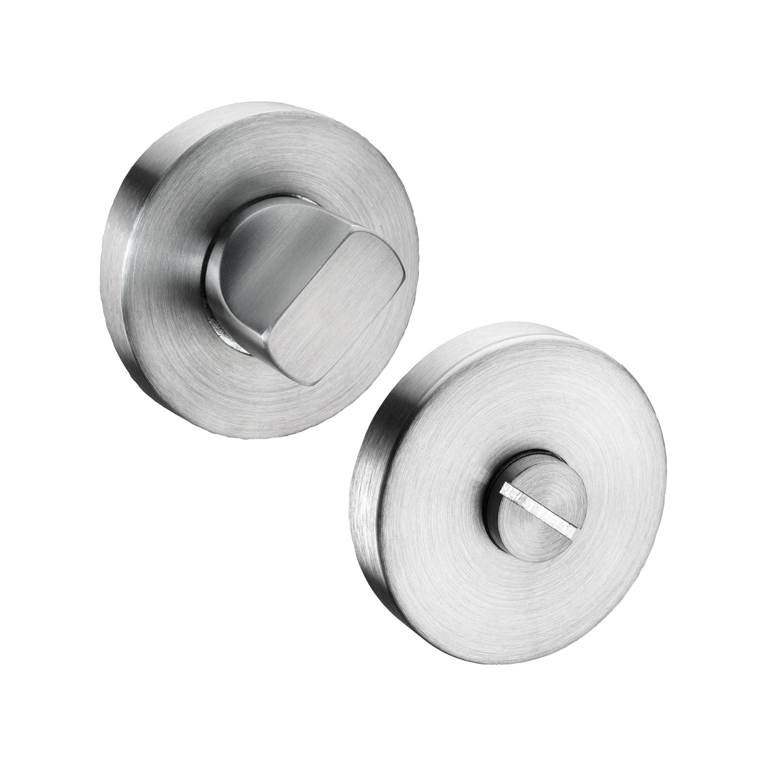 Satin finish A10SS Bathroom Turn & Release Mechanism with 5mm spindle and fixing screws. Â