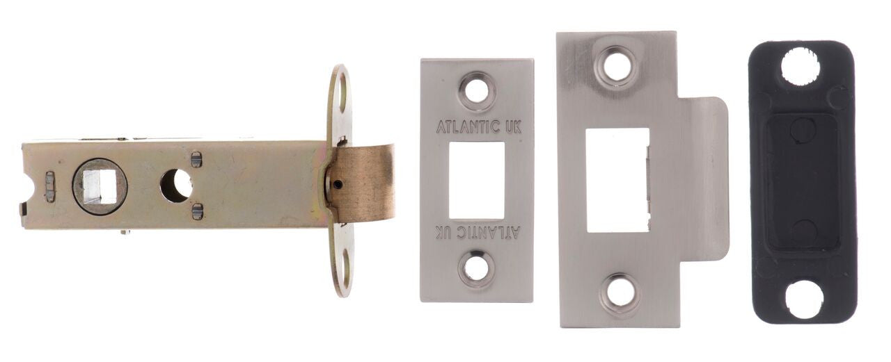 Atlantic Hardware Satin Nickel tubular mortice door latches, to match any Door Handles and Knobs of the same material.  Comes as a complete unit with plates, screws and dust box tidy for door frame which makes it a splendid nice tidy finish.