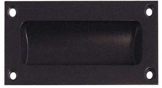 102mm x 45mm - Depth 11mm. This product is most commonly used on sliding doors and hatches and trap doors. flush pull handles are rebated into the door making it flush to the surface. Supplied with fixing wood screws to match.