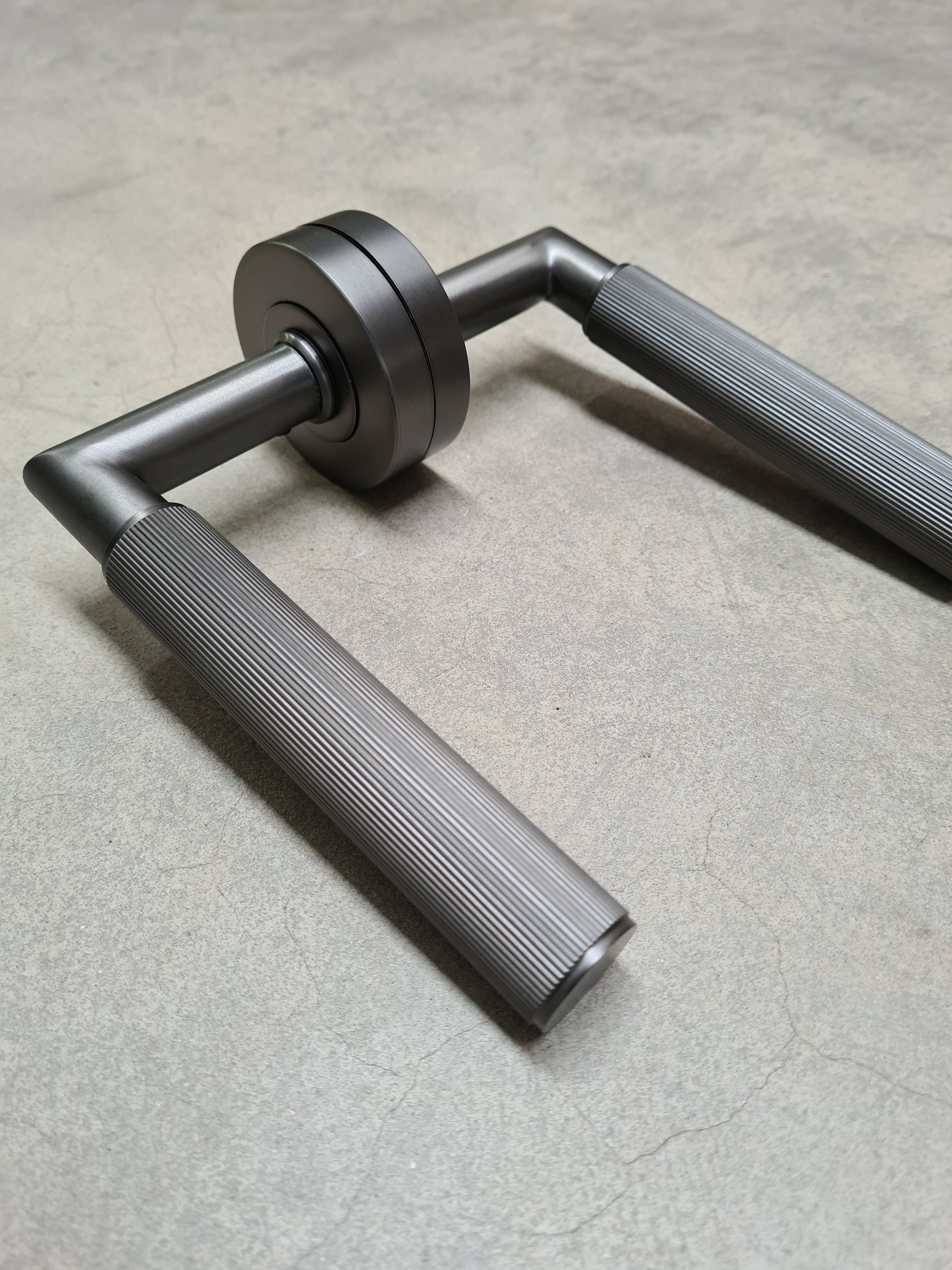 This 'Linear' corrosion resistant Fire Door approved door handle from Frelan Hardware is part of a new exciting range coming called Three One Six. It has FD30/60 fire door rating and Grade 5 corrosion. This modern door handle will be suitable for coastal areas, commercial and residential.  The Three One Six Linear Knurled Lever on Rose Door Handles are a stylish and durable choice for any residential or commercial space. Made from grade 316 stainless steel, these door handles have a knurled texture and rose-style base.