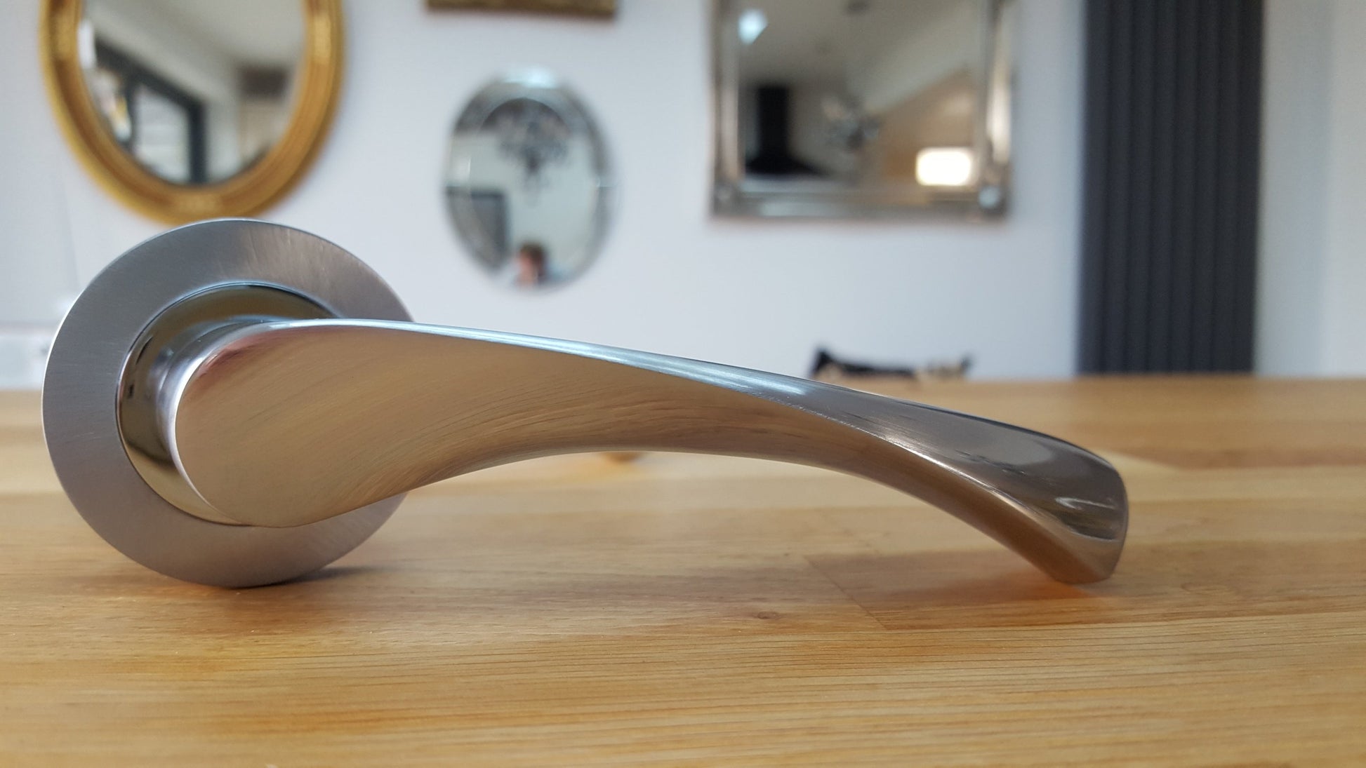 Twirly Door Handles - Dual finish Polished/Satin Chrome. Â One of our big movers, currently in stock and ready to order. Also please see the 'Lifestyle' images we have just had printed in a local contemporary homes magazine.